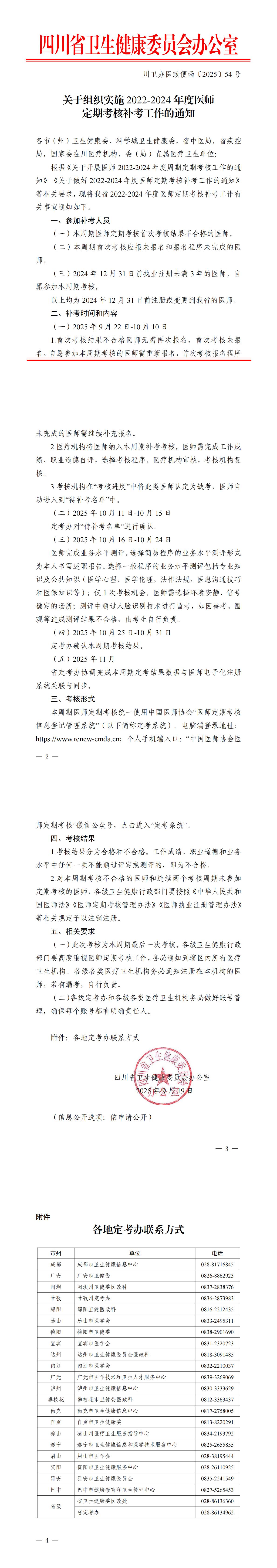 关于组织实施 2022-2024 年度医师 定期考核补考工作的通知