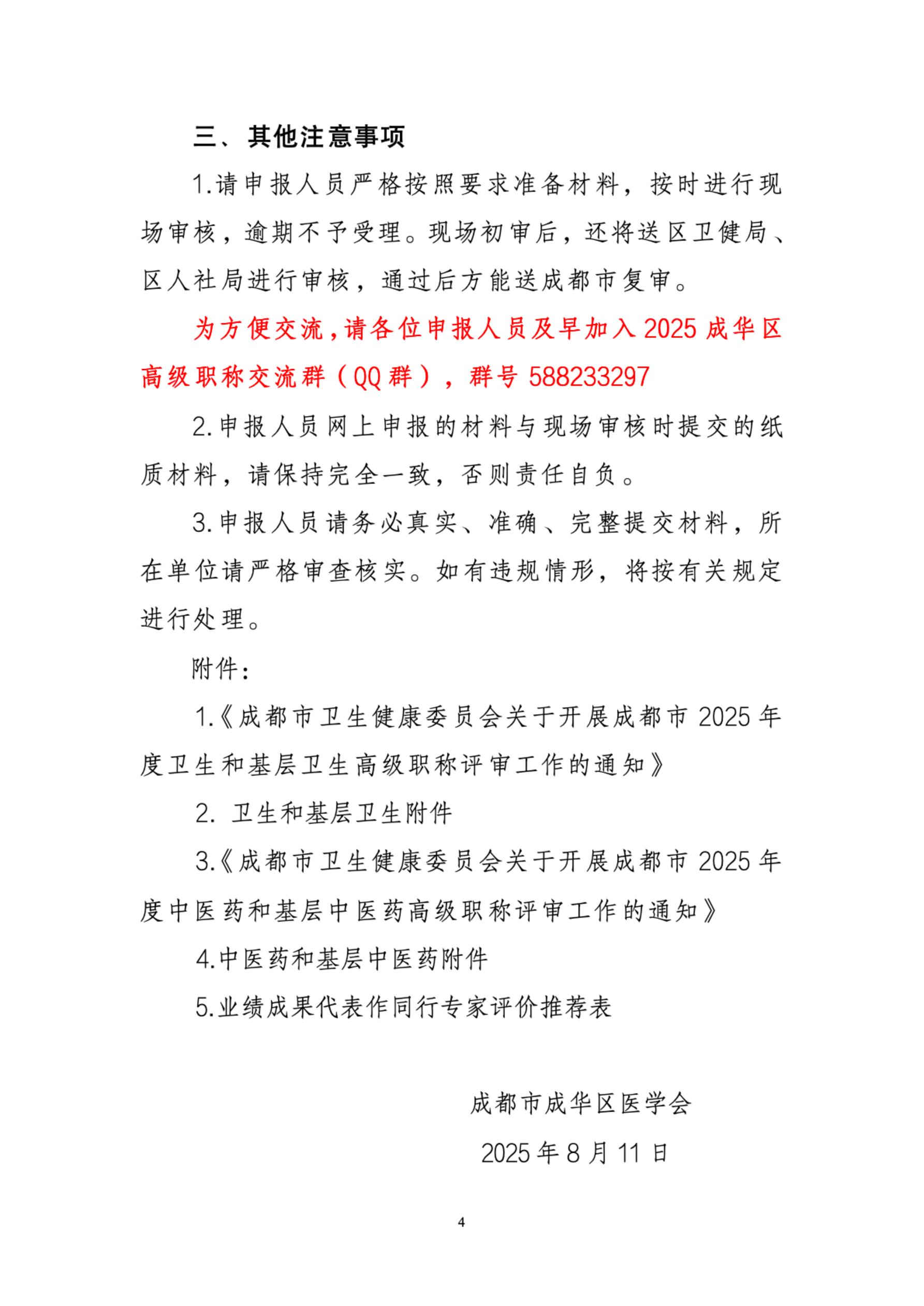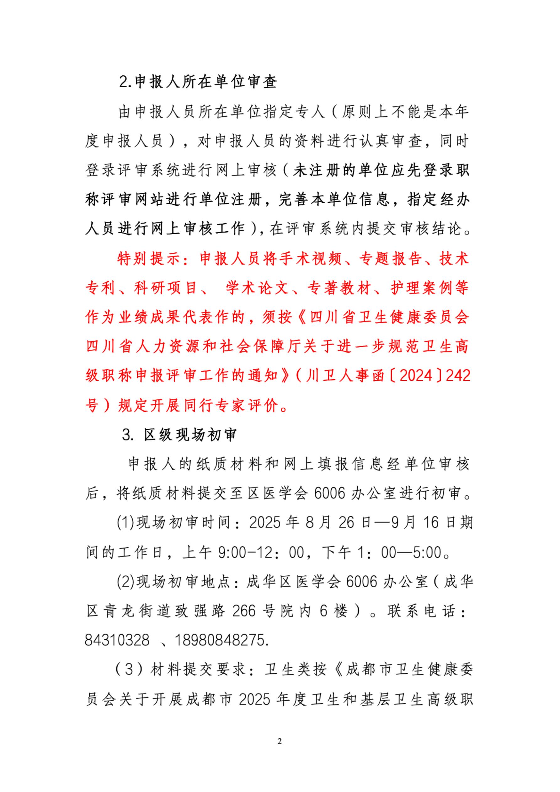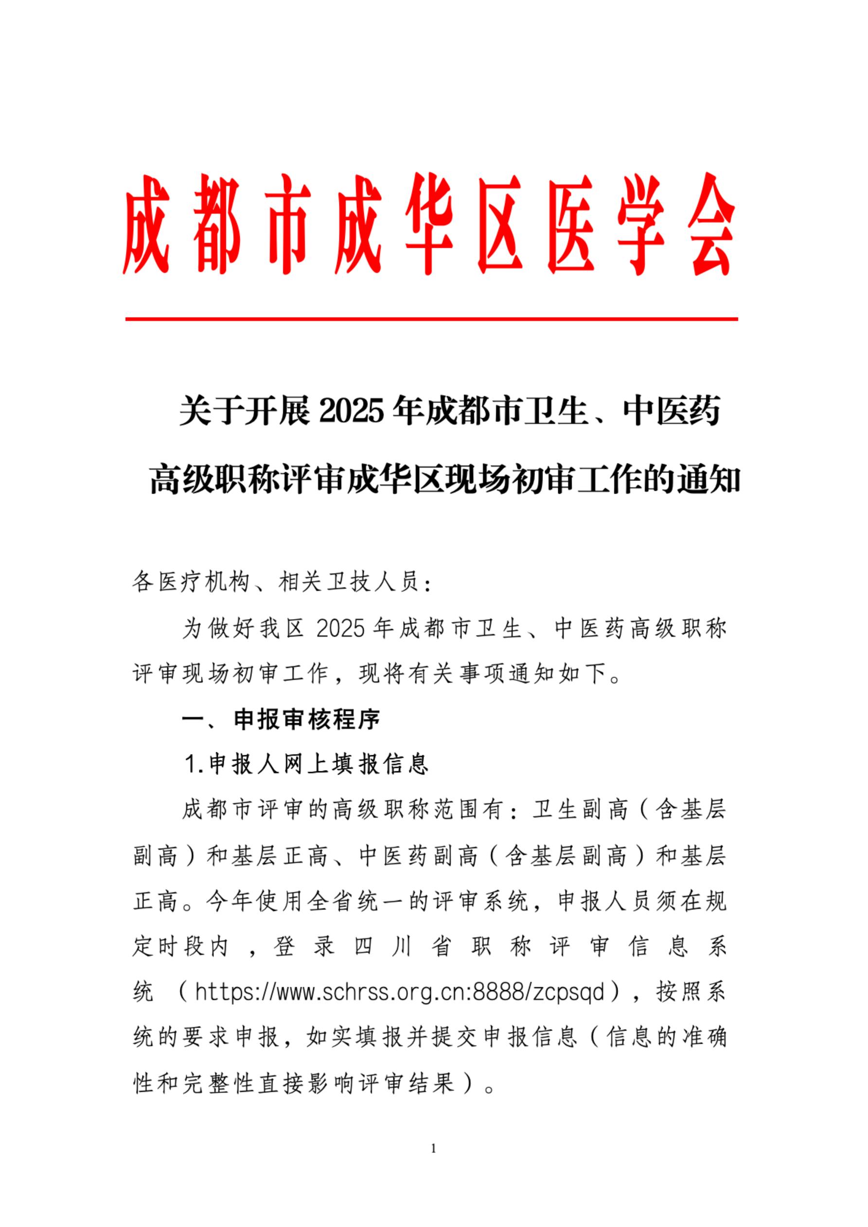 关于开展2025年成都市卫生、中医药 高级职称评审成华区现场初审工作的通知